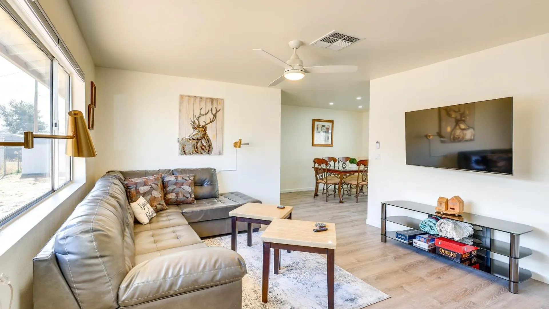 Bénéficiant du Wi-Fi et d'une TV à écran plat avec des chaînes satellite, vous pourrez profiter d'un équipement de repassage. Le logement Kingman Vacation Rental With Yard And Fire Pit offre des toilettes séparées, une baignoire et une douche, ainsi que des équipements de confort tels qu'un sèche-cheveux et des draps de bain.